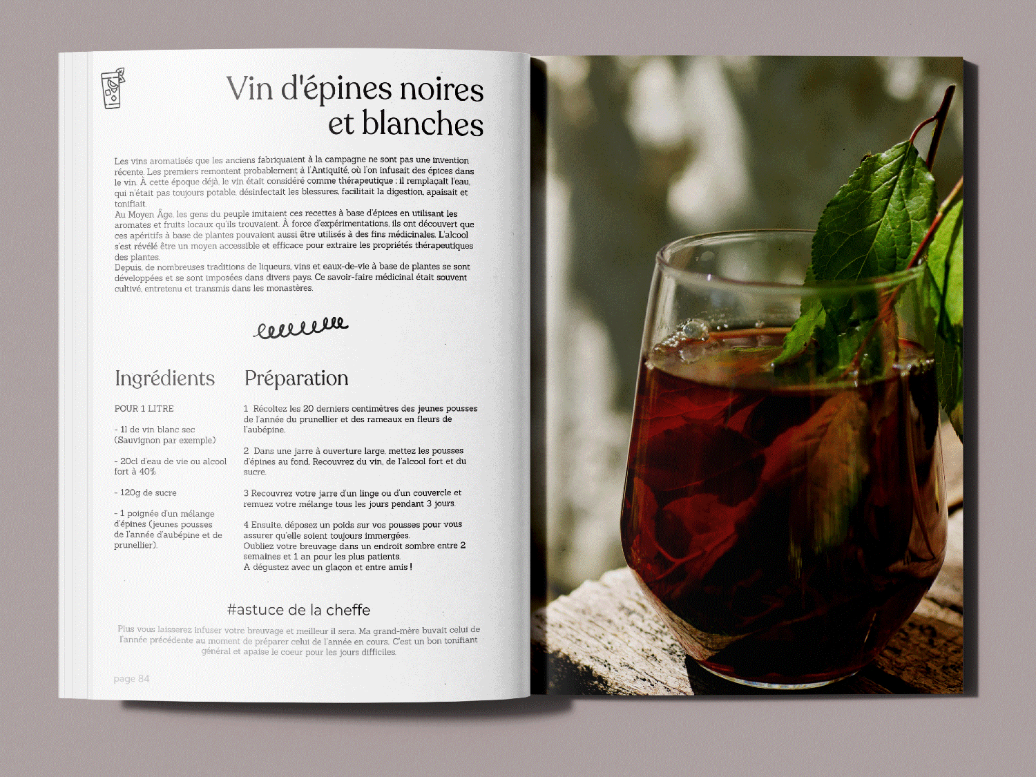 • Des recettes inédites pour chaque mois : une entrée, un plat, un dessert et une boisson pour expérimenter en cuisine les saveurs sauvages récoltées.